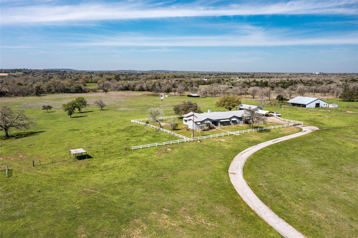 The Lambert Ranch is located in southern Lee County, just south of Giddings, Texas. The home sits on a hill near the middle of the property and overlooks rolling pastures and scattered oaks. Several sizable ponds on the property are great spots to cast a line with family and friends. There are a few improvements on the property. The entire place is fenced and there are some cross-fenced sections. From the gated entrance, a paved road leads you up to the main structures. There is a 1,942 sf main house (built in 1963) with a 700 sf attached garage. The main house features two bedrooms and two bathrooms. Adjacent to the main house is a great, open porch leading to the 540 sf pool and 528 sf 1/1 guest cabin. The open porch has incredible views of the pastures and ponds. Nearby by the main house, there is a barn where equipment is currently stored. By the back pond, there is an old open, vacant shed. There are three stock tanks throughout the property. The tank near the entrance is approximately 2.03 acres, the tank by the shed is +/- 0.38 acres, and next to it is another tank consisting of 0.93 acres. In the back of the property nearby the property boundary line, there is some drainage meandering to the neighbor’s property. Minerals owned by the seller will not convey.
