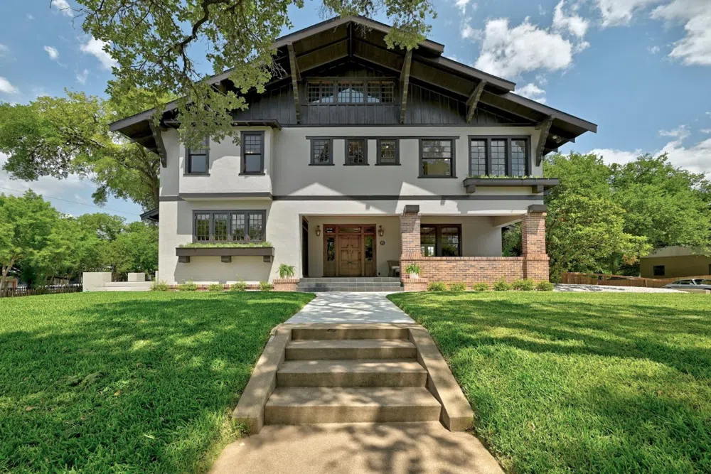 ASK ABOUT SELLER FINANCING! Spectacular Historical Landmark 1921 Restored Craftsman built by William H. Stacy, a founder of the highly coveted Travis Heights neighborhood. Sited high on a triple corner lot, minutes from downtown with ATX skyline views, Stacy House has been thoughtfully renovated and completely updated for modern living with the original character preserved. This classic and luxurious light filled home has beautiful restored original hardwood floors, windows, built-ins & woodwork. A welcoming front porch and solid front door lead into a large living room with wood burning fireplace and built-in bookcases. French doors open to a delightful adjacent sunroom and onto a terrace. The stunning paneled dining room has French doors that open to the front porch and on to the north terrace with city views. New kitchen features exposed brick, tile floor, white custom cabinetry, quartz countertops, 6 burner gas range with hood, pot filler, refrigerator and microwave drawer. Butler pantry adjacent with wine fridge. 1/2 bath on main. 2nd floor has 3 bedrooms.Dreamy primary bedroom w/wb fireplace, new handsome ensuite bath w/walk-in shower & lovely sunroom. 2 guest bedrooms with city views share a Jack and Jill full bath w/shower. Back bedroom has an adjacent sunroom.A 3rd full bath w/tub is next to a convenient laundry closet. Let your imagination run wild on the 3rd floor and create your own music/art/yoga studio, playroom or den out of the massive flex space. An additional room with built-ins is perfect for a home office, studio or 4th bedroom.Newly updated HVAC, electrical, plumbing, baths and lighting.The 12,110 sf lot has room to expand the estate with a pool and plans for a 2 car garage + ADU above are approved by ATX landmark committee.Landscaped with fenced backyard and front and back in ground sprinklers. Lower taxes/historical exemption/estimates only and should be verified. Close to Blunn Creek Preserve, Stacy Park, SOCO, Downtown and Lady Bird Lake.