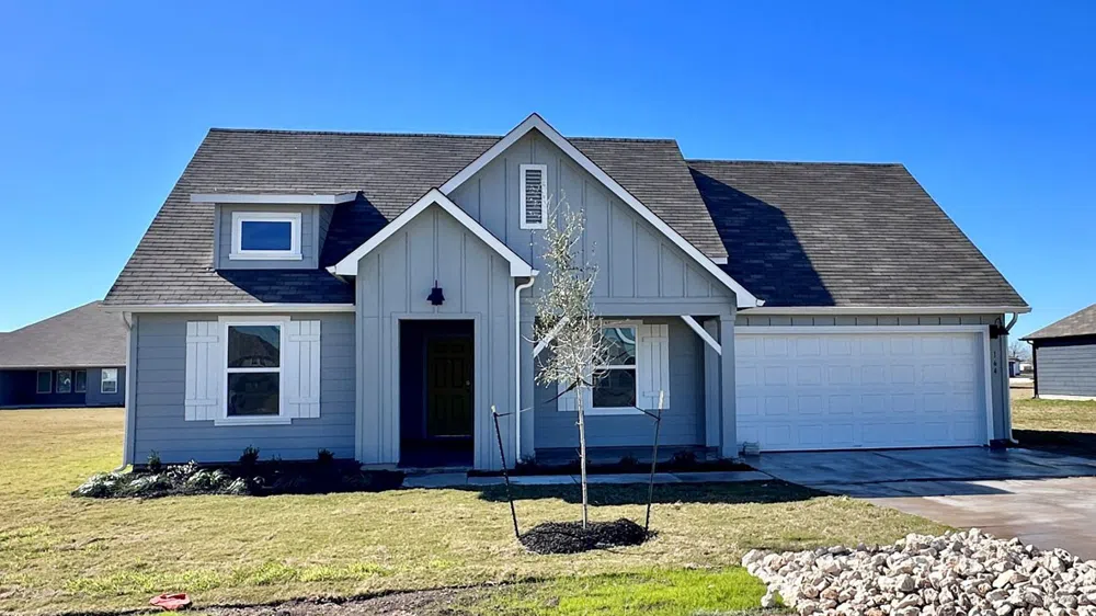 JUNE ESTIMATED COMPLETION. INCLUDES BLINDS AND GARAGE DOOR OPENER. The Garland is a thoughtfully designed floorplan that offers 2,134 square feet of living space across 4 bedrooms, 2 bathrooms.. As you enter the home into the foyer, you'll pass a hallway with two spacious bedrooms and a bathroom in between. An extra bedroom is located across the hall with a spacious walk-in closet. Continuing into the home you will enter into the kitchen area. The kitchen offers a large kitchen island, decorative tile backsplash, quartz countertops, stainless steel appliances and walk-in pantry, perfect for entertaining. Extending off the kitchen is the dining room and open family room. The dining room looks out to the spacious covered patio. The main bedroom provides plenty of natural lighting, as well as a large walk in closet. The Garland also offers full yard sod, irrigation and gutters on the entire house. This home includes our HOME IS CONNECTED base package which includes the Alexa Voice control, Front Door Bell, Front Door Deadbolt Lock, Home Hub, Light Switch, and Thermostat.