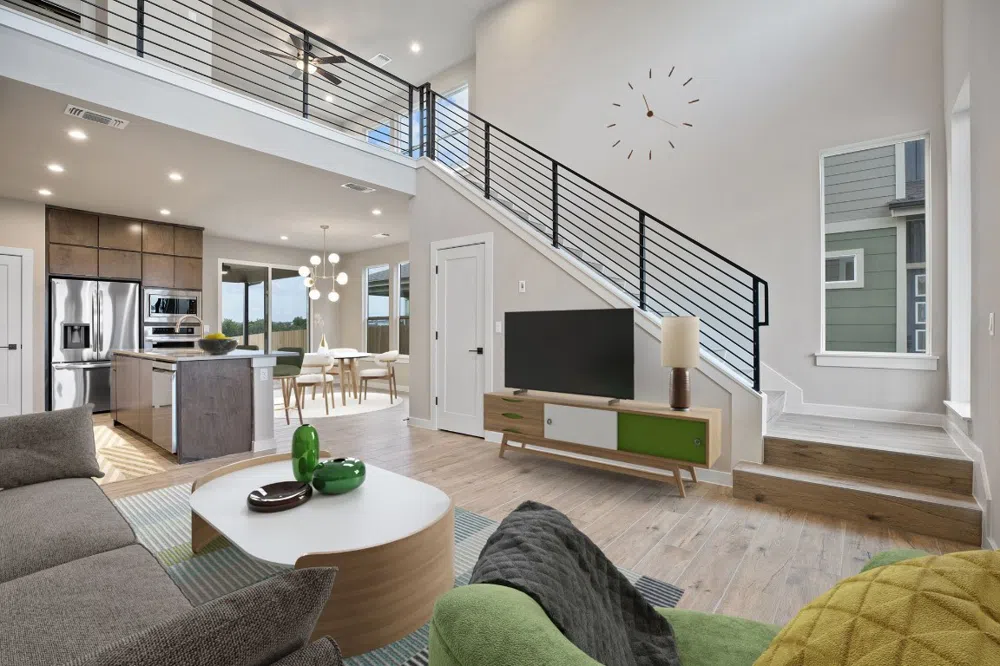 16516 Wind Chime Dr; 1824 sqft, 3 bed 2.5 bath plus loft; Price Reduced to $549,000 This home backs to one of the largest greenbelts in Whisper Valley! The 12-foot ceiling in the master suite is awash in natural light from the 12-foot retractable door system. Master bath includes double vanities, all tile surround with shampoo bottle niche, and frameless glass shower enclosure. Master and powder backsplashes are tile from vanity to ceiling and dressed with sconce lighting. The living room soars with 19-foot ceilings, tile covered stairs with Schluter, and black metal railings. The kitchen island holds bar seating for 4 as you prep cocktails and dinner with an LG appliance package that includes the refrigerator. Premium hardware selections adorn all soft close cabinet doors and drawers that are capped with 3CM countertops. Garage is finished with a shaft mount opener system and epoxy painted floors. To enjoy all these features comfortably, the house is complemented with 100% foam insulation, a state-of-the-art geothermal heating/cooling system AND solar power to race towards a net zero capable home and ultra-low utility bills. Tesla Powerwall options are available. There are over 600 acres of green space with walking trails, and community gardens will sprinkle your table with vegetables. It’s only a 4-minute walk to the community gym/pool, and a 20-minute drive to downtown. Google and AT&T fiber are at the curb for 1GB service. Price includes a 2-1 rate buydown, contact builder for more details.