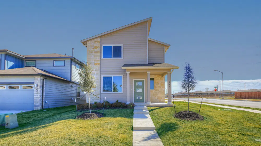 MOVE IN READY! CORNER LOT. The Newhaven is a two-story floor plan that offers 1,854 square feet of living space across 4 bedrooms and 3.5 bathrooms. Entering the home from the inviting front porch, you'll find yourself in the living room. The living room flows into the open concept dining room and kitchen. The kitchen features stainless steel appliances throughout, quartz countertops, and decorative tile backsplash. The first floor also features a half bath, a spacious utility room and a large covered patio. Making your way upstairs you'll find all three extra bedrooms, two extra bathrooms and a spacious storage closet. Lastly, the main bedroom, bedroom 1, features a large bathroom and walk-in closet. The Newhaven also features a covered patio, full sod and irrigation, and gutters on the front, sides, and back of the house. This home includes our America's Smart Home® base package which includes the Alexa Voice control, Front Door Bell, Front Door Deadbolt Lock, Home Hub, Light Switch, and Thermostat.