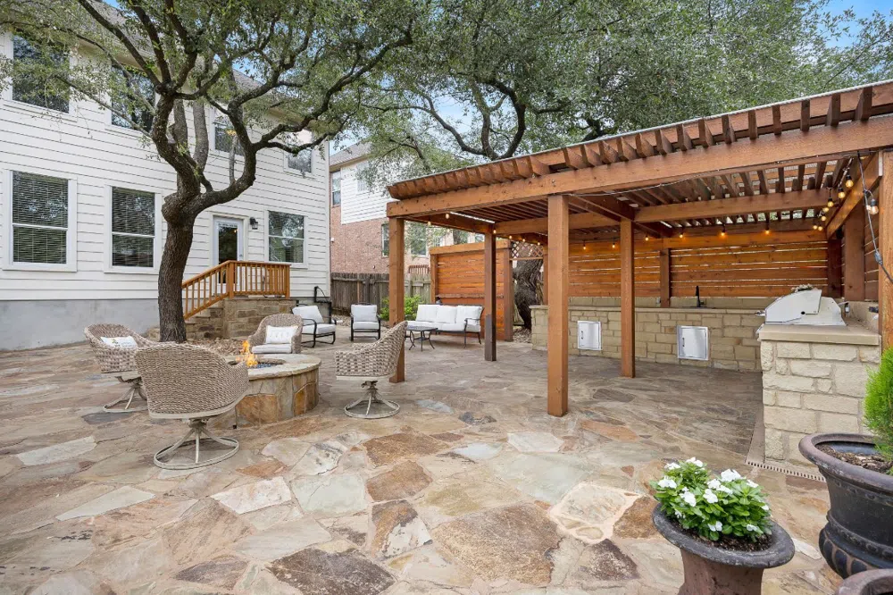 Situated on a quiet street tucked off of the main thoroughfare, this property boasts a generous 2-story floor plan, backyard oasis & room for everyone to spread out! Including 5 bedrooms, 3.5 baths + a dedicated home office/flex room + formal dining room + large upstairs bonus space, there is plenty of room for everyone to spread out for WFH needs, hobbies & play time! All 3 full bathrooms have been REMODELED, energy-efficient updates such as an upgraded radiant barrier in the attic, window glass in many windows replaced, ROOF is two years old and SO many more updates! Step outside into the backyard oasis, where you'll find a custom flagstone patio designed for outdoor entertaining. Gather around the built-in gas fire pit w/ family & friends. The covered outdoor kitchen is a chef's dream, complete w/ a gas grill, sink & full electrical setup, making outdoor cooking a breeze. Lake Forest, known for its exceptional amenities, offers a community pool, scenic trails & sidewalks for leisurely strolls, catch-and-release pond, a tennis & basketball court for active recreation, and the added convenience of two in-neighborhood schools, Blackland Prairie Elementary and Ridgeview Middle School. Located about 20 minutes from the new Samsung Plant being built in Taylor, don't miss the opportunity to own this beautifully cared for home in the sought-after Lake Forest community.