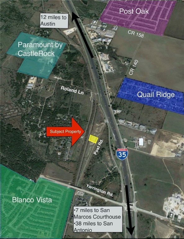 This platted lot has all utilities available and is zoned R/S (Retail Services). Uses could range from retail to office to service businesses. Great convenience into Austin, San Marcos, and even San Antonio via IH-35. This immediate area, and especially Kyle in general, is experiencing tremendous growth. FM 150 will be realigned from just west of Kyle to Yarrington Road, thus creating much more activity in this corridor.